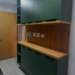 Temos a opção do cliente escolher cozinhas até o teto, com aproveitamento de 100% do espaço sem perder a elegância dos armários ou afastadas do teto deixando ela moderna e versátil.